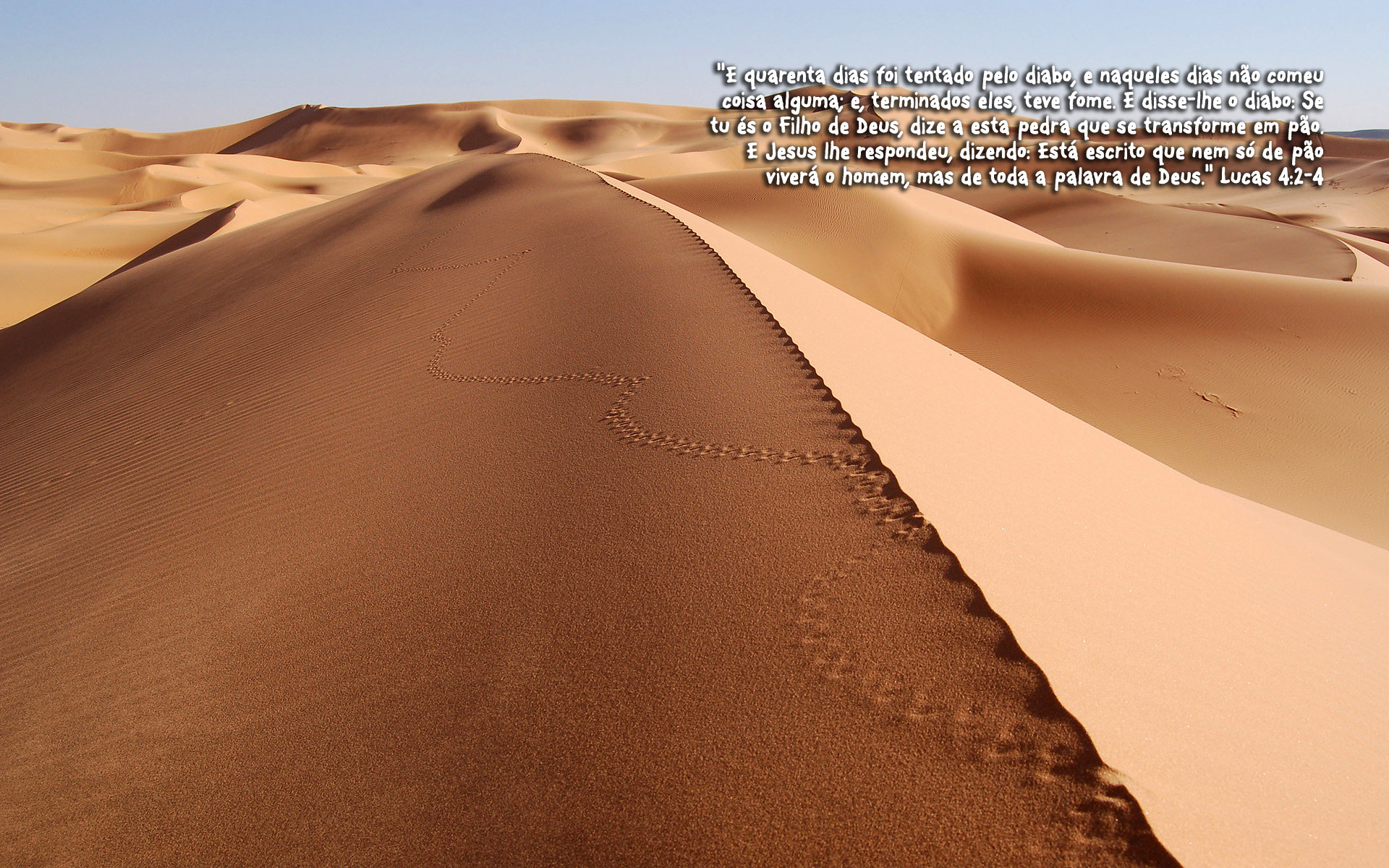 "E quarenta dias foi tentado pelo diabo, e naqueles dias não comeu coisa alguma; e, terminados eles, teve fome. E disse-lhe o diabo: Se tu és o Filho de Deus, dize a esta pedra que se transforme em pão. E Jesus lhe respondeu, dizendo: Está escrito que nem só de pão viverá o homem, mas de toda a palavra de Deus." Lucas 4:2-4