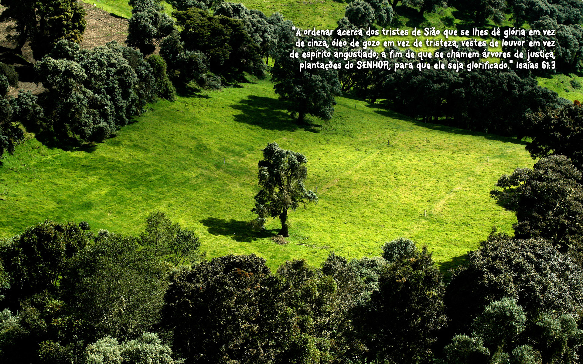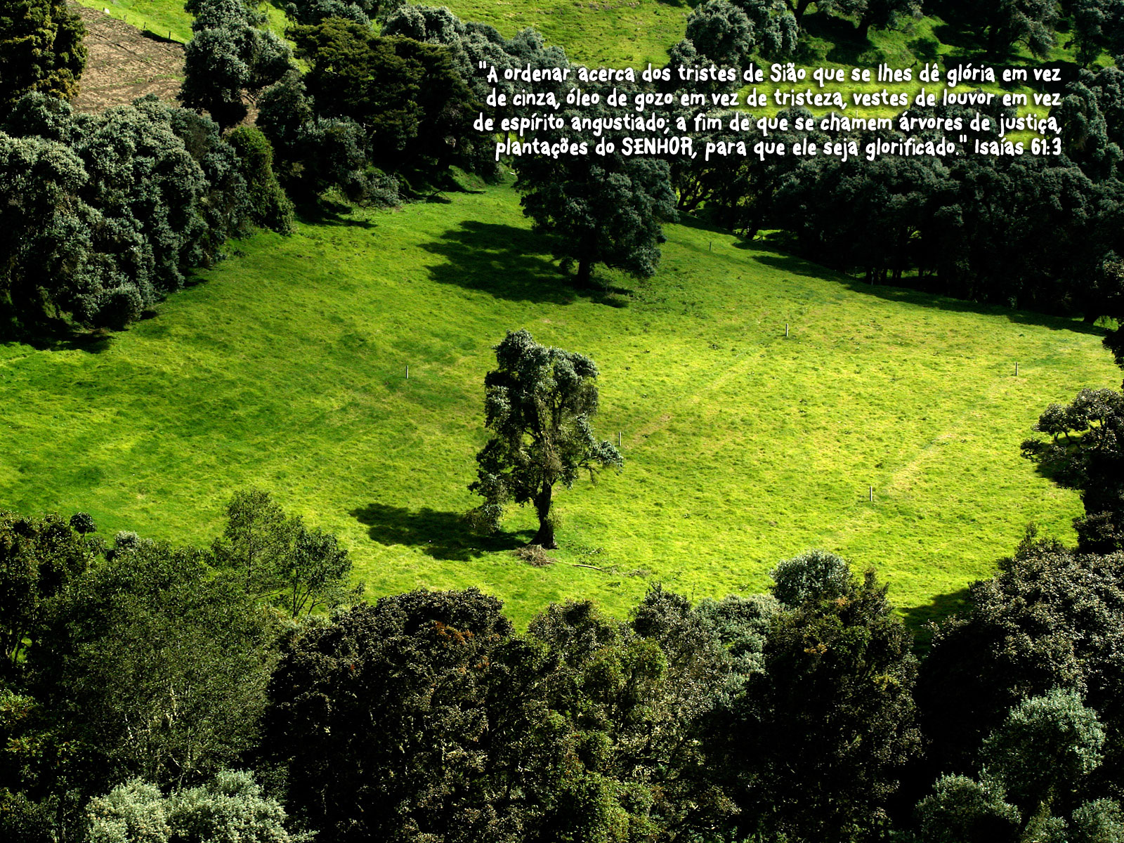"A ordenar acerca dos tristes de Sião que se lhes dê glória em vez de cinza, óleo de gozo em vez de tristeza, vestes de louvor em vez de espírito angustiado; a fim de que se chamem árvores de justiça, plantações do SENHOR, para que ele seja glorificado." Isaías 61:3