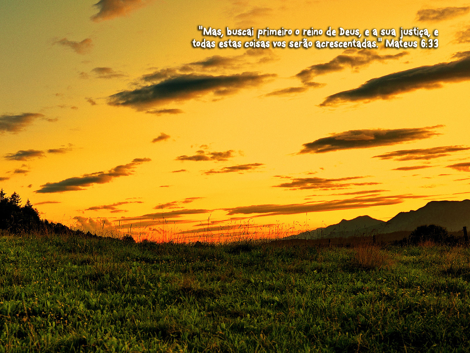 "Mas, buscai primeiro o reino de Deus, e a sua justiça, e todas estas coisas vos serão acrescentadas." Mateus 6:33